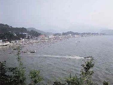 - 길게 이어진 백사장과 비교적 잔잔한 파도가 특징입니다.